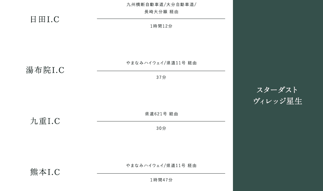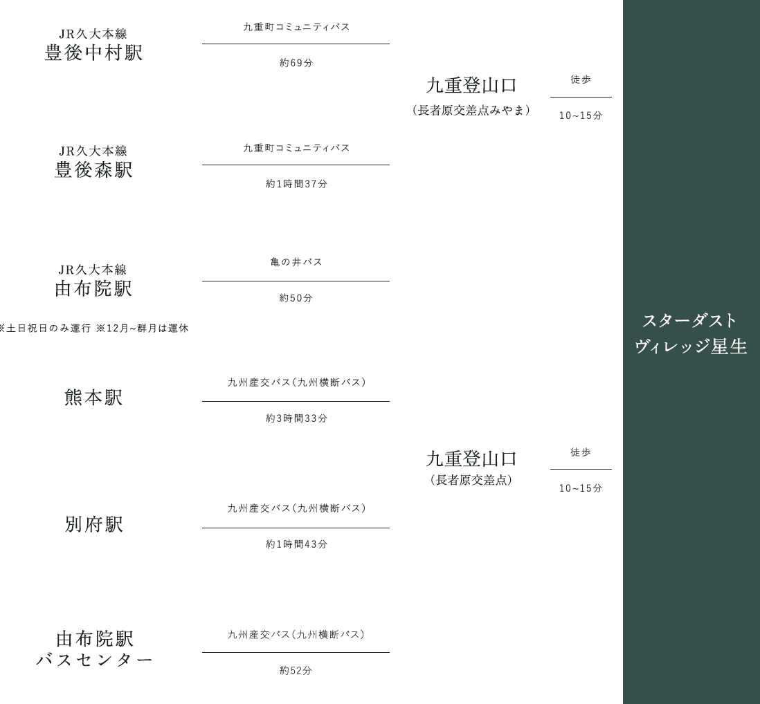 「九重登山口」バス停からは徒歩で約10~15分。※横スクロールにして御覧ください -
