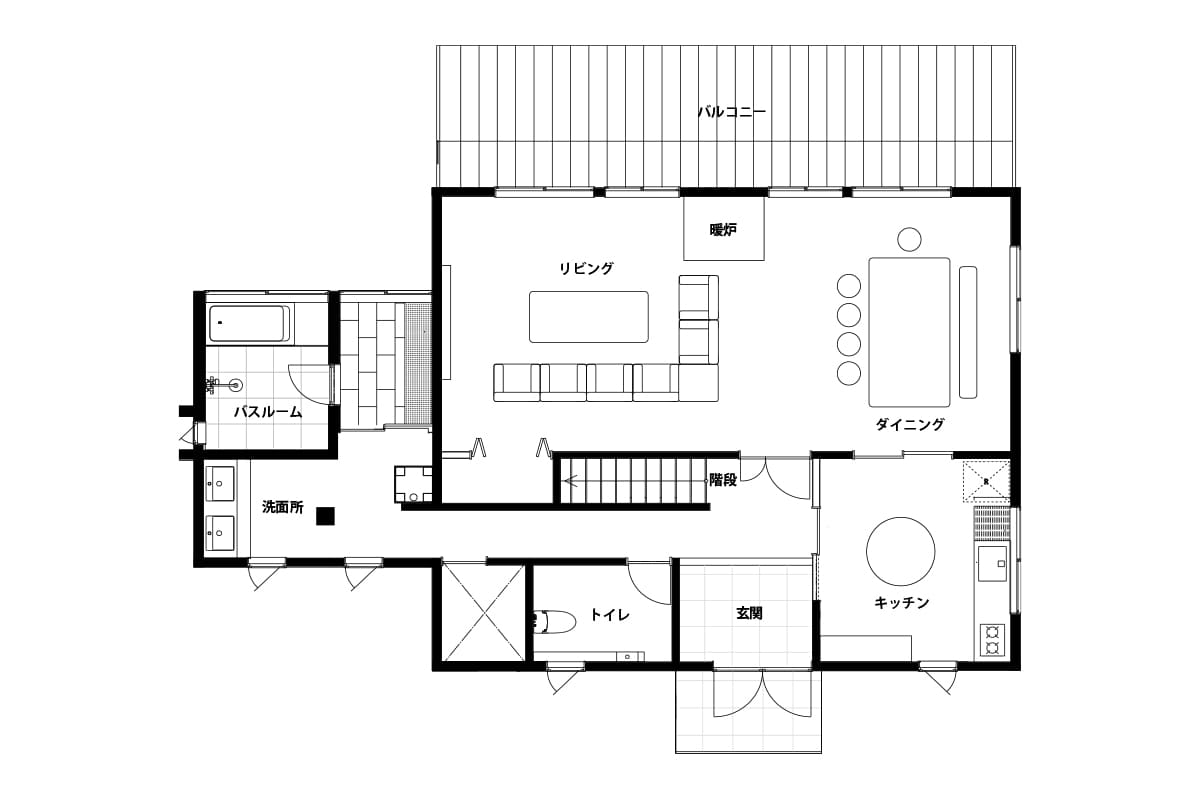 バルコニー バルコニーからは、周囲の自然風景を一望することができます。 のどかな雰囲気の中で、ゆっくりとくつろぐ時間を過ごすバルコニーは空間に開放感をもたらし、内外が一体となった心地よい空間を演出します。